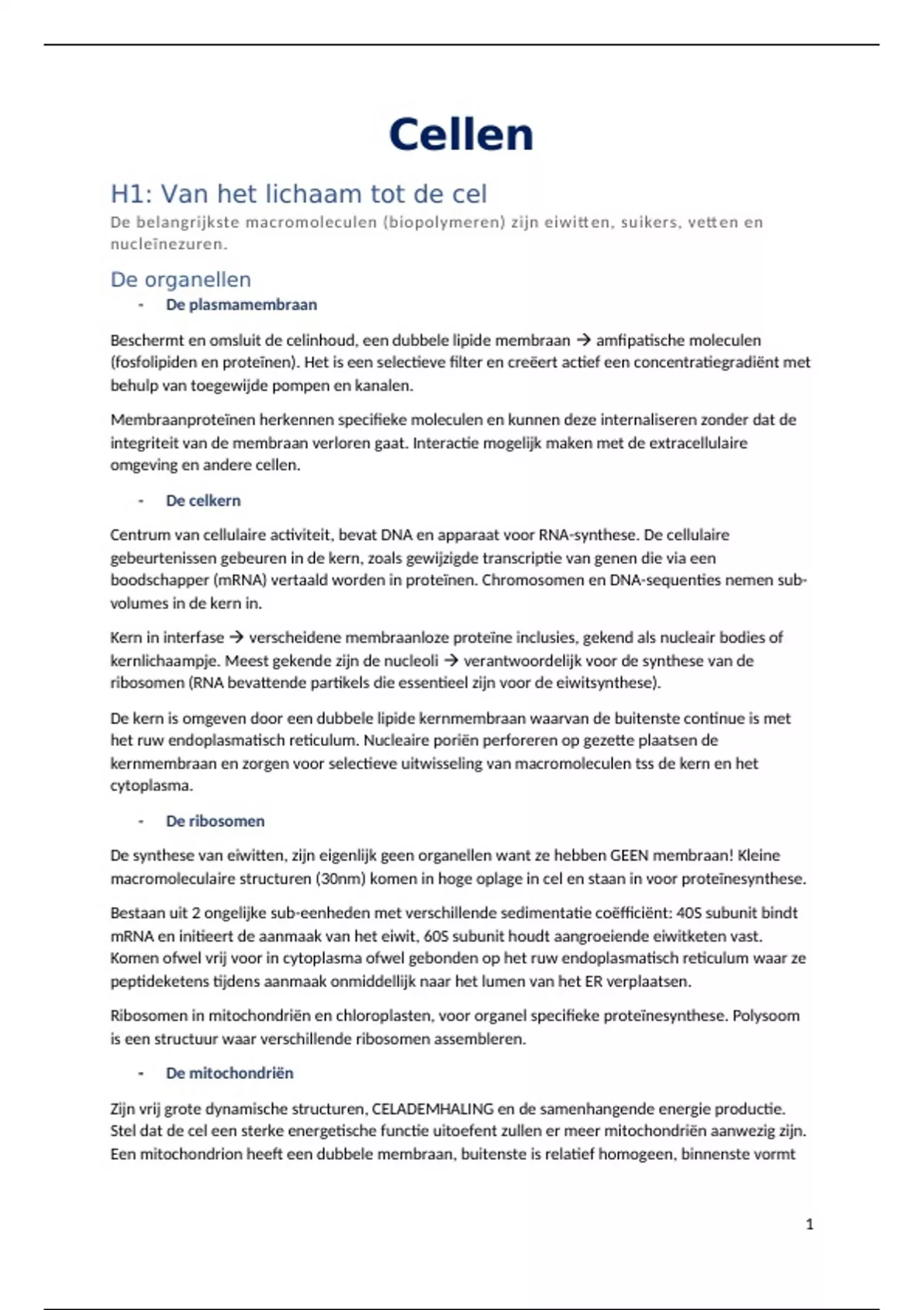 H1: Van het lichaam tot de cel