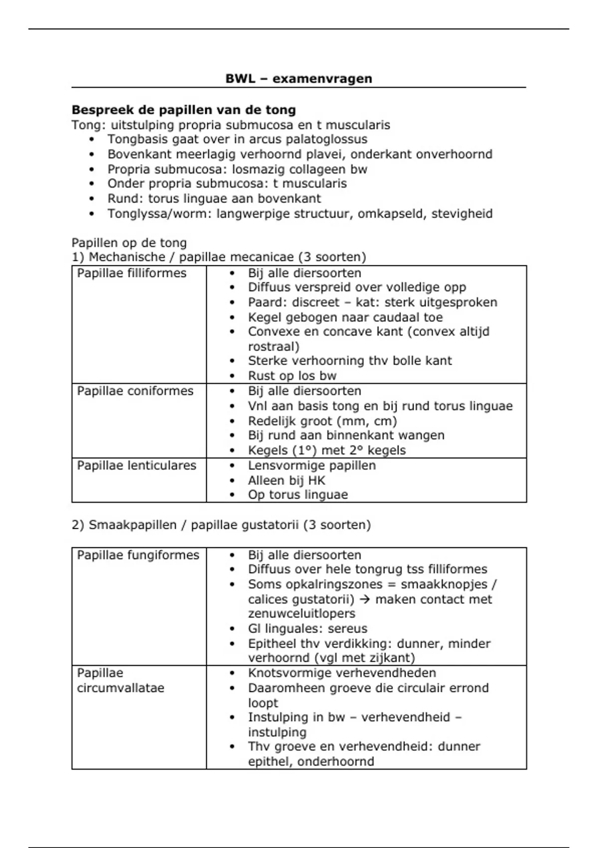 Papillae fungiformes Bij alle diersoorten