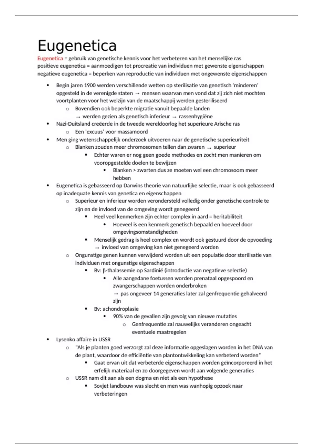 Eugenetica = gebruik van genetische kennis voor het verbeteren van het menselijke ras