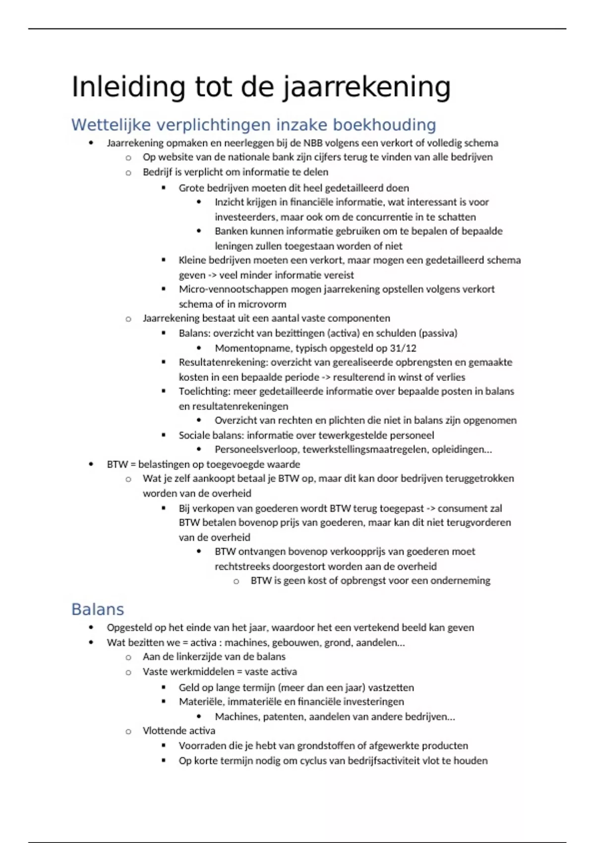 o Jaarrekening bestaat uit een aantal vaste componenten