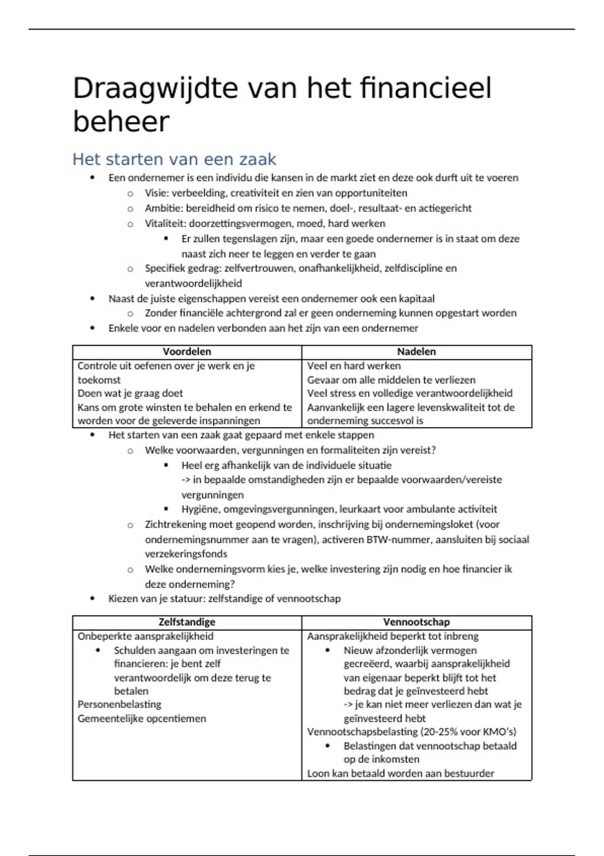 o Welke ondernemingsvorm kies je, welke investering zijn nodig en hoe financier ik