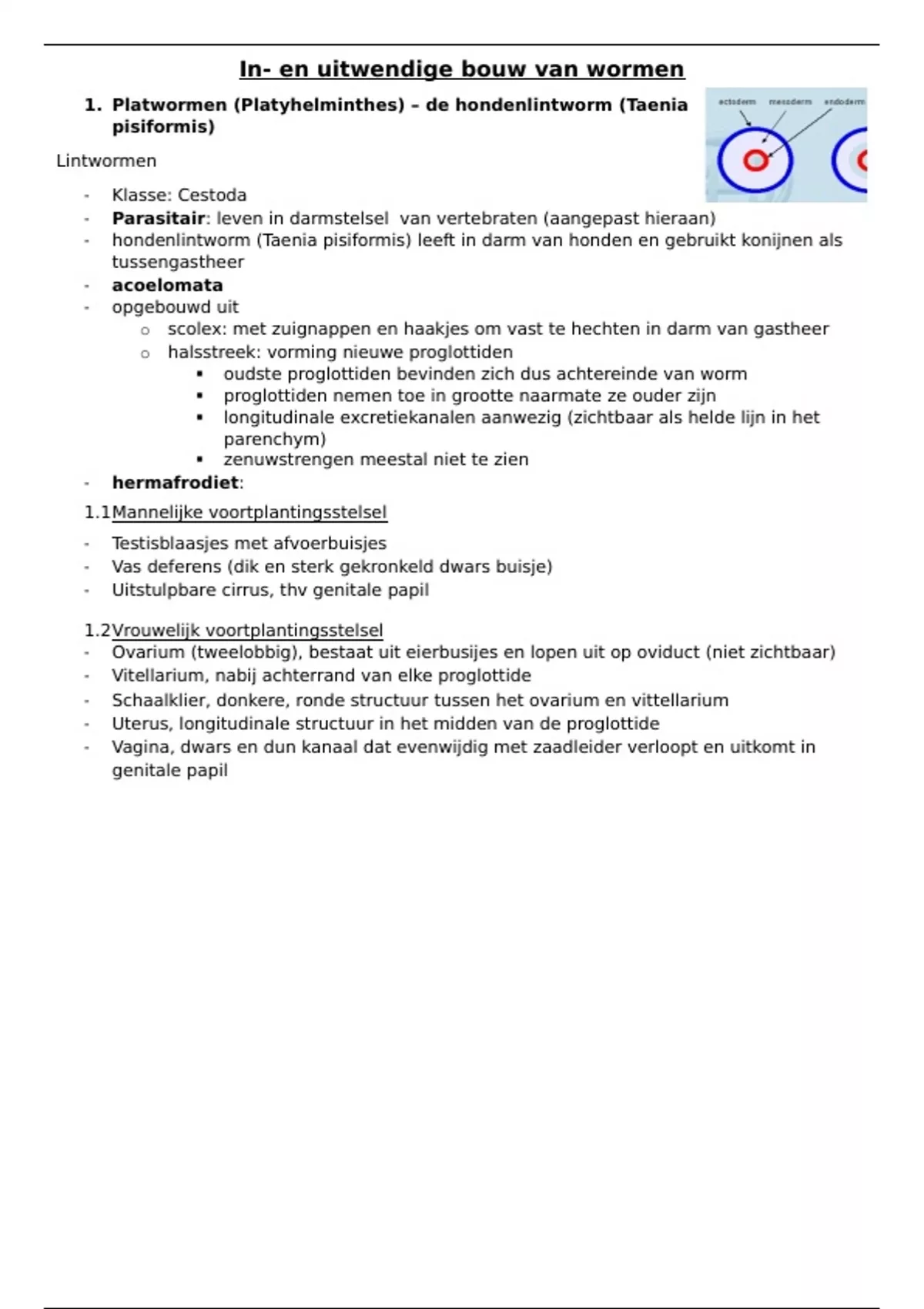 1. Platwormen (Platyhelminthes) – de hondenlintworm (Taenia