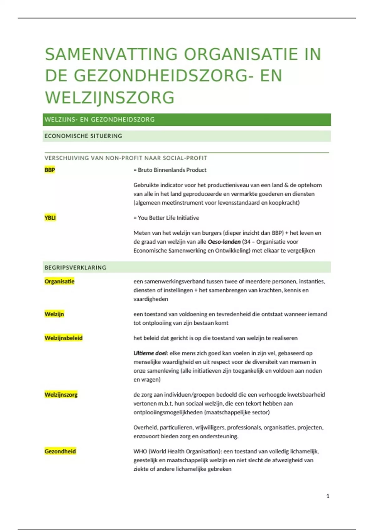 SAMENVATTING ORGANISATIE IN