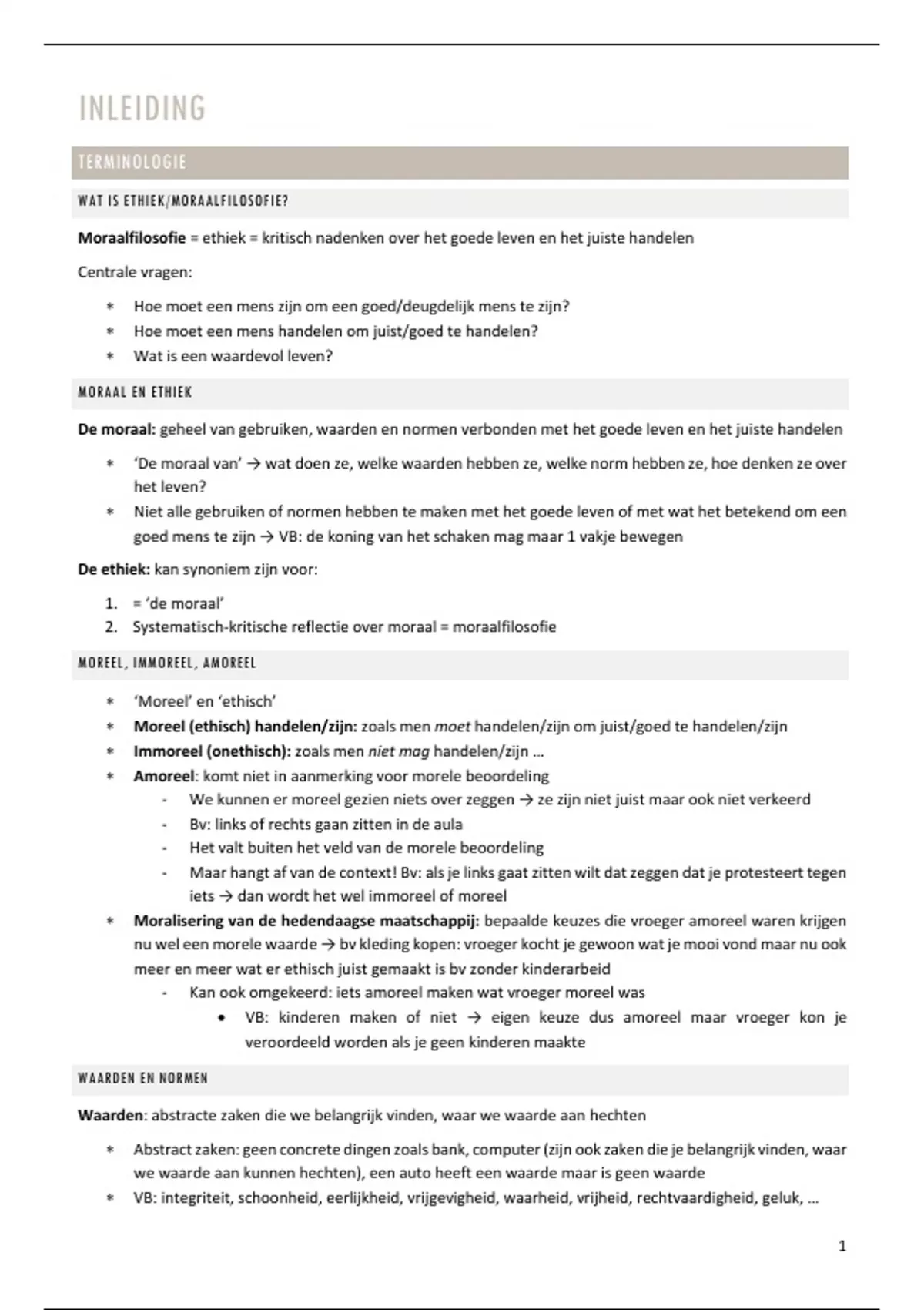 * VB: integriteit, schoonheid, eerlijkheid, vrijgevigheid, waarheid, vrijheid, rechtvaardigheid, geluk, …