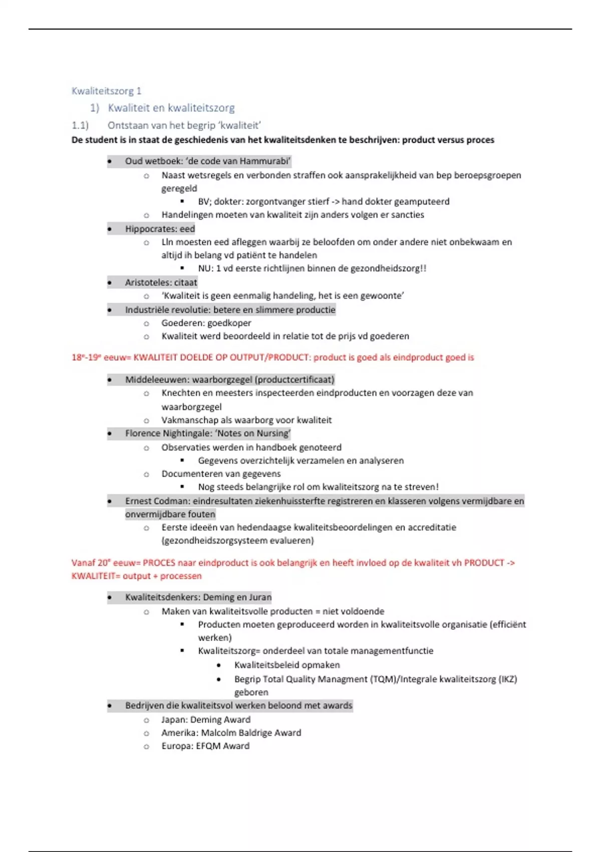 Vanaf 20e eeuw= PROCES naar eindproduct is ook belangrijk en heeft invloed op de kwaliteit vh PRODUCT ->