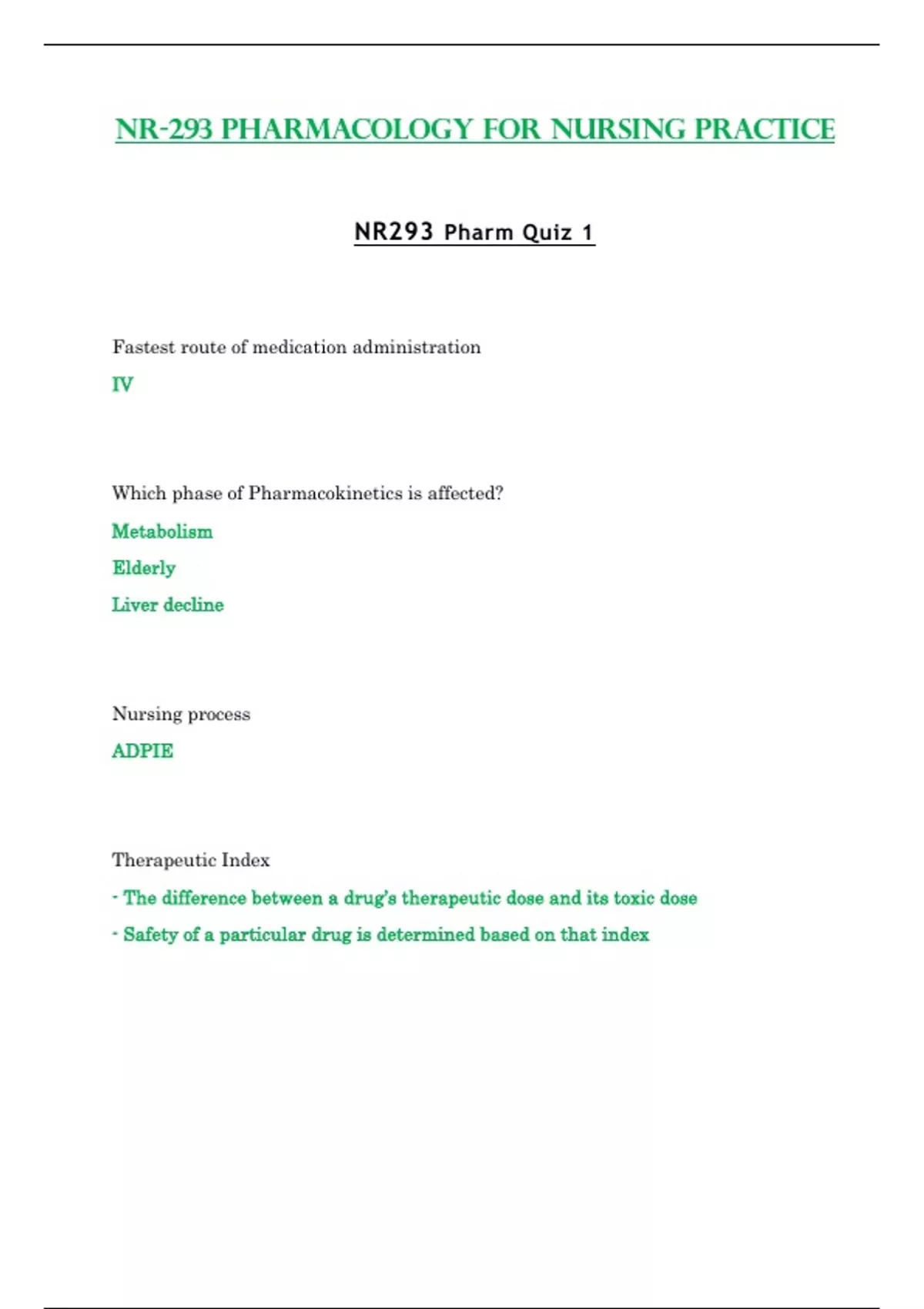 Quiz 1 - NR293 / NR 293 (Latest 2023 / 2024) : Pharmacology For Nursing Practice - Chamberlain