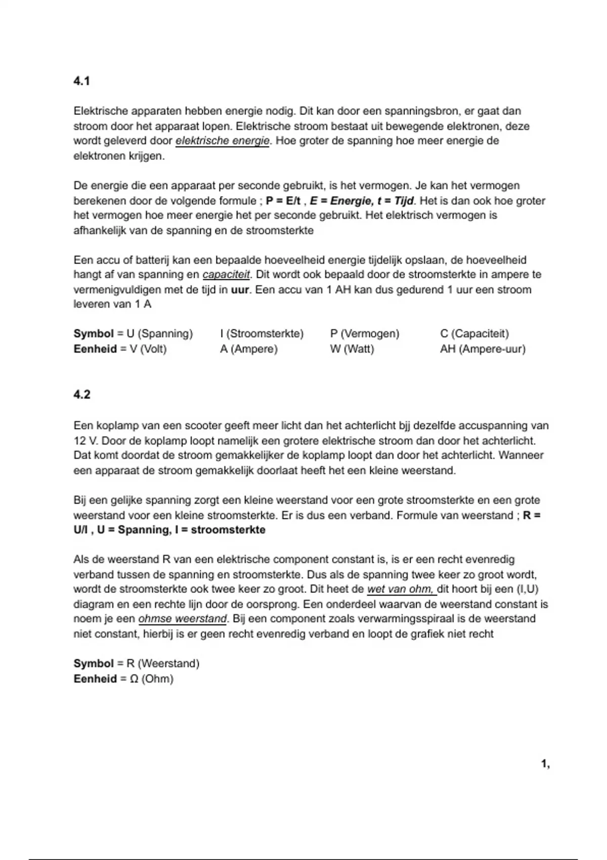 wordt de stroomsterkte ook twee keer zo groot. Dit heet de wet van ohm, dit hoort bij een (I,U)