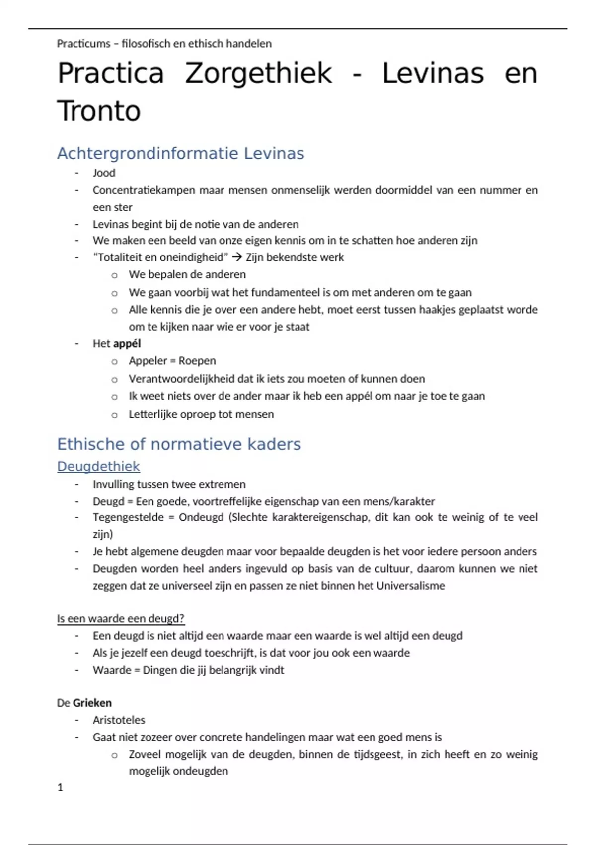 Dit is mijn samenvatting van de practica van het opleidingsonderdeel Filosofisch en ethisch handelen (QE1450) van de professionele bachelor Orthopedagogie aan de UCLL te Hasselt. In deze samenvatting staat de informatie verteld in de practicums van het opleidingsonderdeel, aangevuld met de PowerPoints