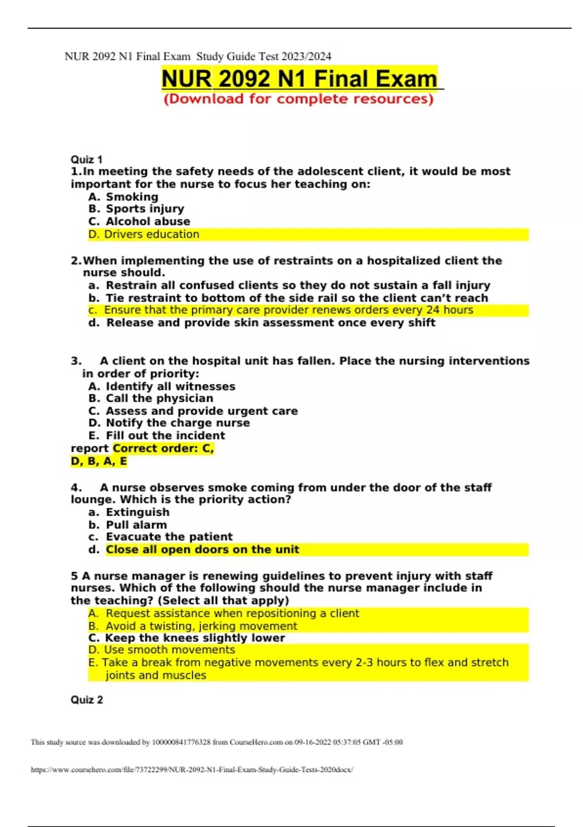 nur 2092 n1 final exam 20232024