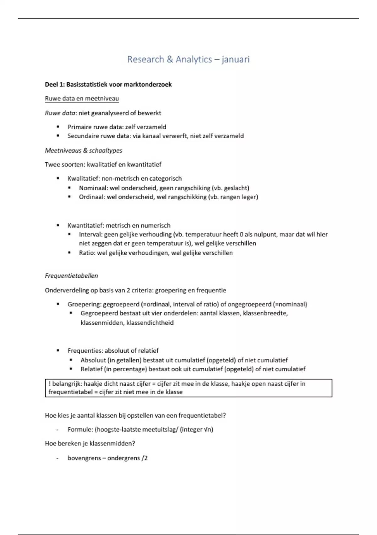 Deel 1: Basisstatistiek voor marktonderzoek