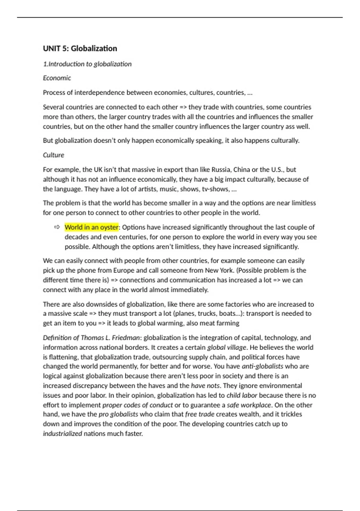 UNIT 5: Globalization