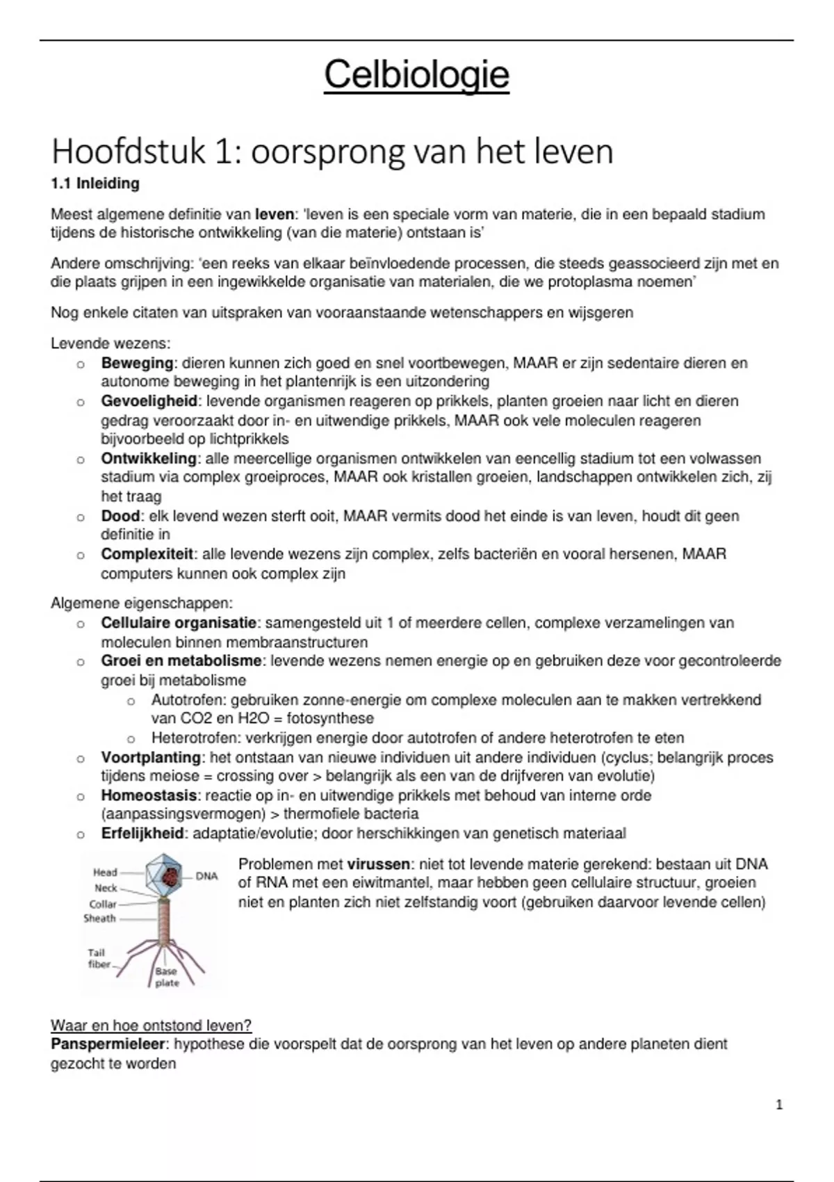 Hoofdstuk 1: oorsprong van het leven