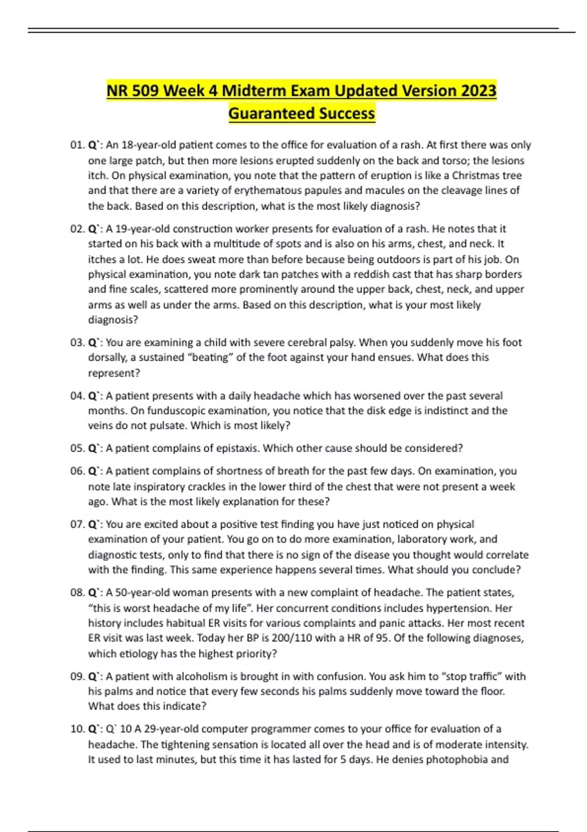nr 509 week 4 midterm exam updated version 2023 gu
