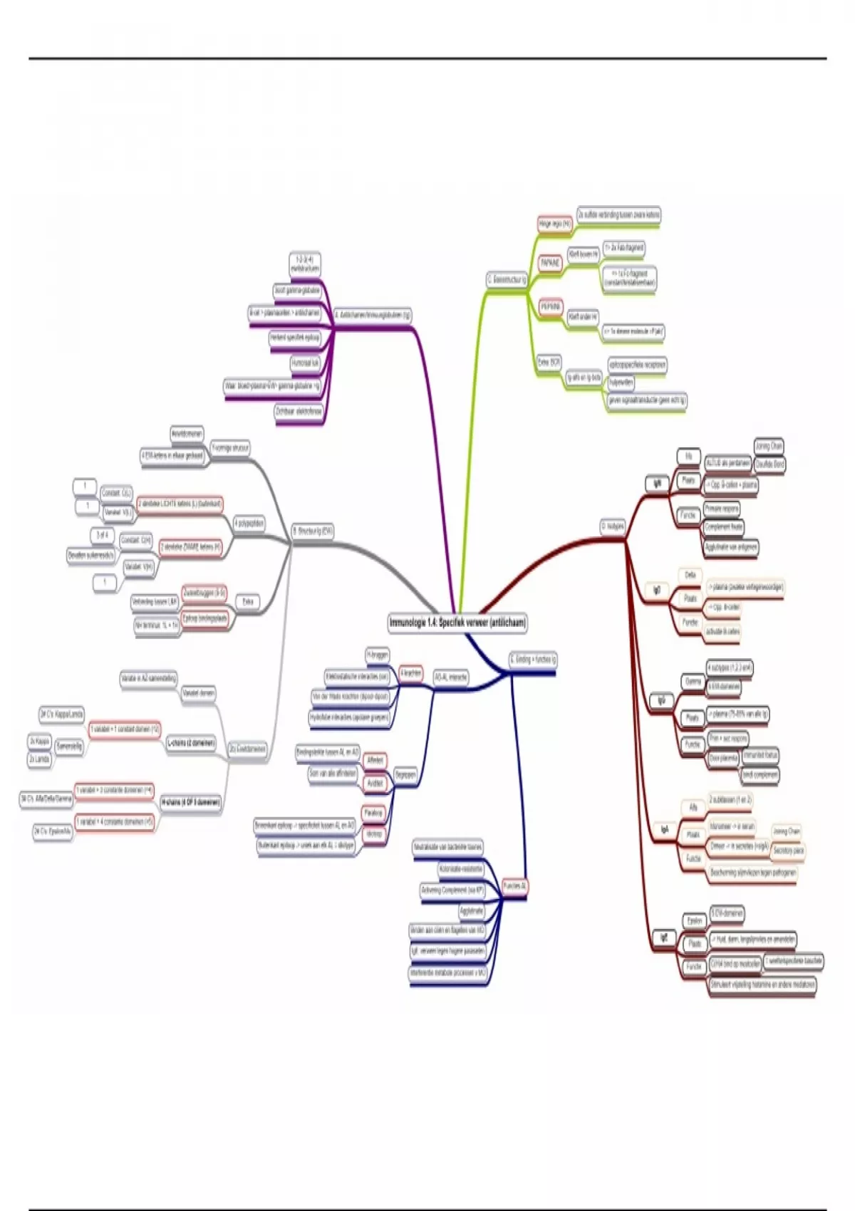 Mindmap over Les 4: Antilichamen Alle leerstof die gekend moet zijn voor Immunologie 1 (Hematologie). Docent: K. Pittois Bepaald cijfer: 15/20 Gemaakt om tijdens het studeren en visueel overzicht te bewaren over de leerstof. Heeft geholpen om betere samenhang tussen bepaalde onderwerpen te zien.