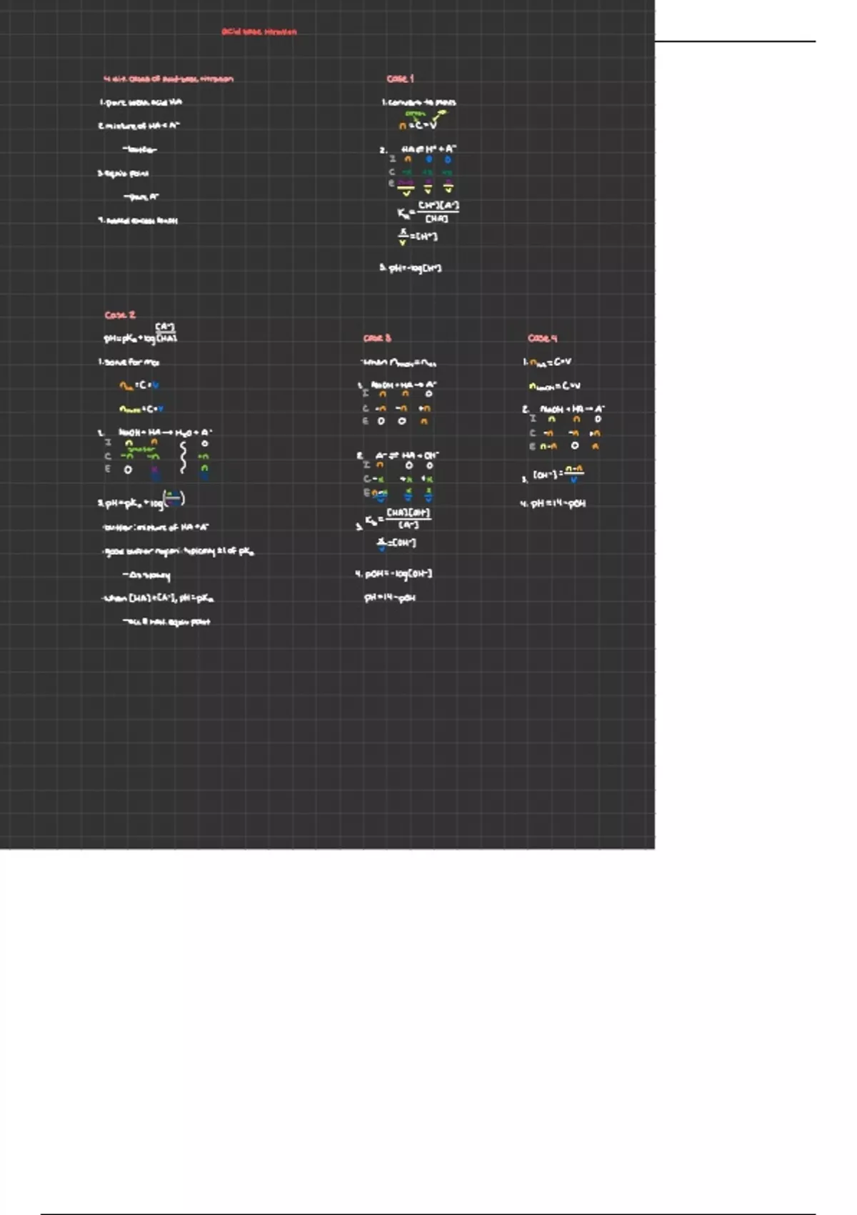 Overview of acid-base titrations covered in lecture. Four (4) cases to use titrations.