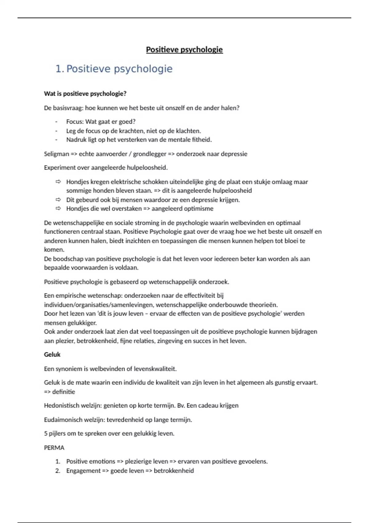 1. Positive emotions => plezierige leven => ervaren van positieve gevoelens.