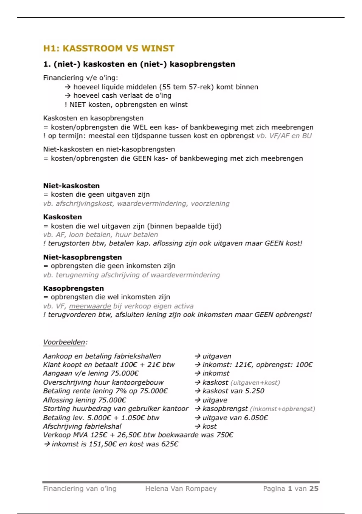 1. (niet-) kaskosten en (niet-) kasopbrengsten