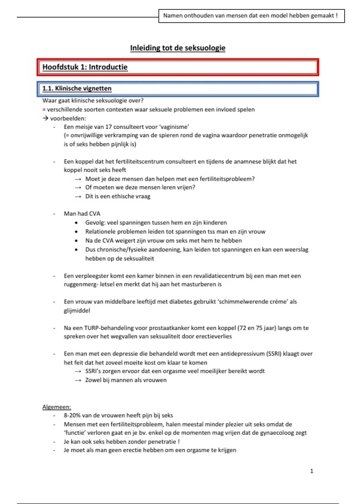 Dit is een samenvatting van het vak 'Inleiding tot de klinische seksuologie' van prof Enzlin. Hierin is alles heel deftig en gedetailleerd uitgeschreven wat er in de powerpoints staat en wat er in de les gezegd wordt. Ik haalde een 17 voor dit vak.