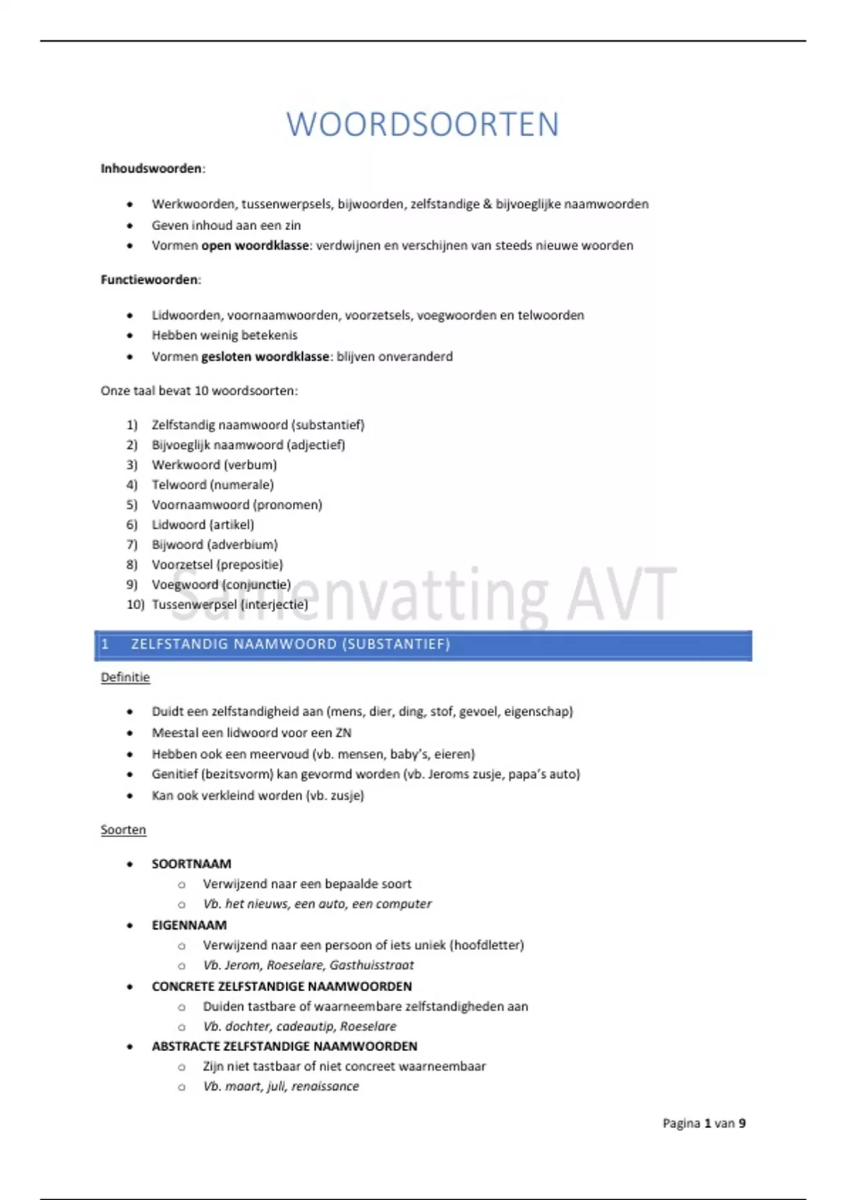 1 ZELFSTANDIG NAAMWOORD (SUBSTANTIEF)