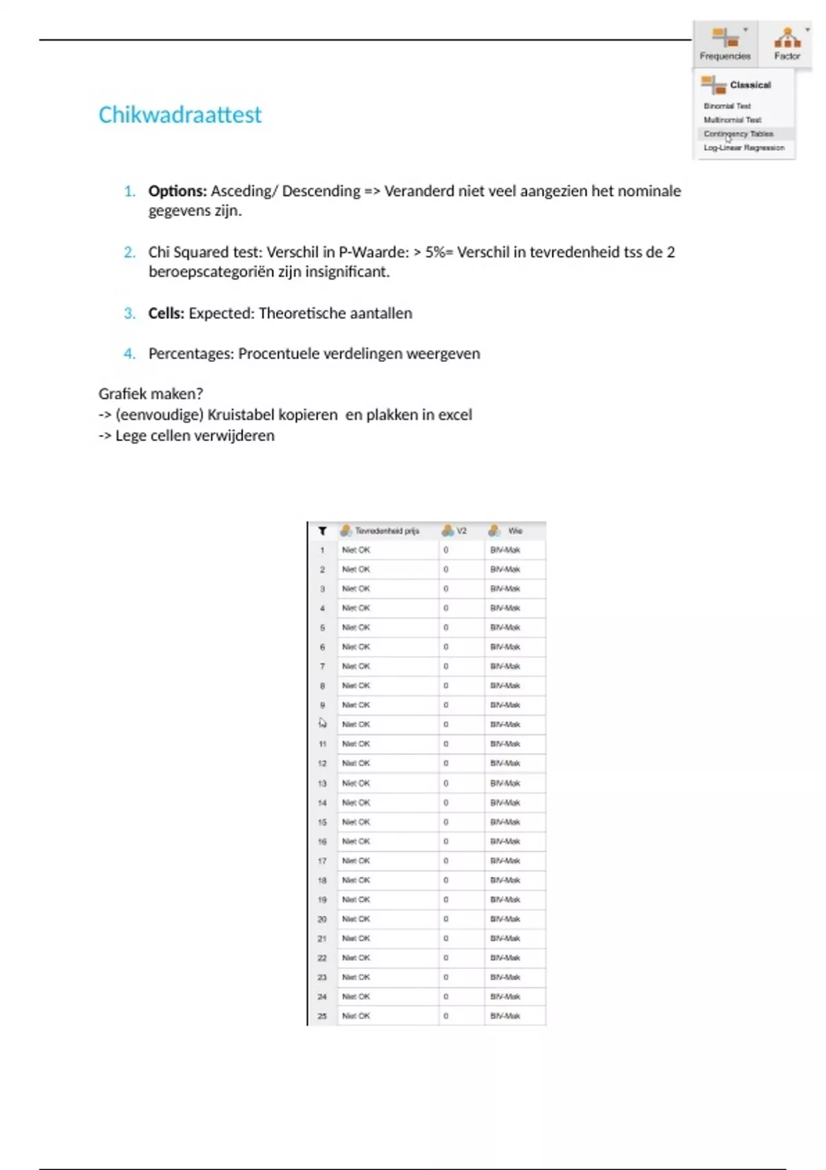 2. Chi Squared test: Verschil in P-Waarde: > 5%= Verschil in tevredenheid tss de 2