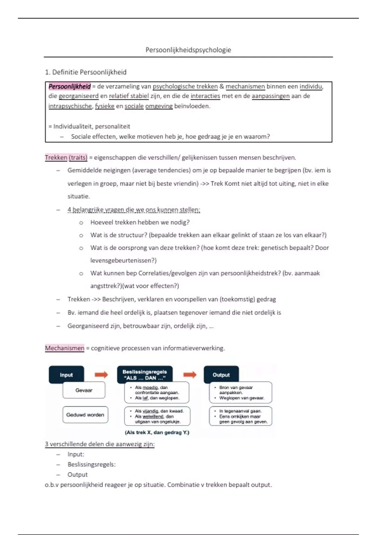 Hulp nodig bij het vak persoonlijkheidspsychologie, hier een duidelijke en volledige samenvatting