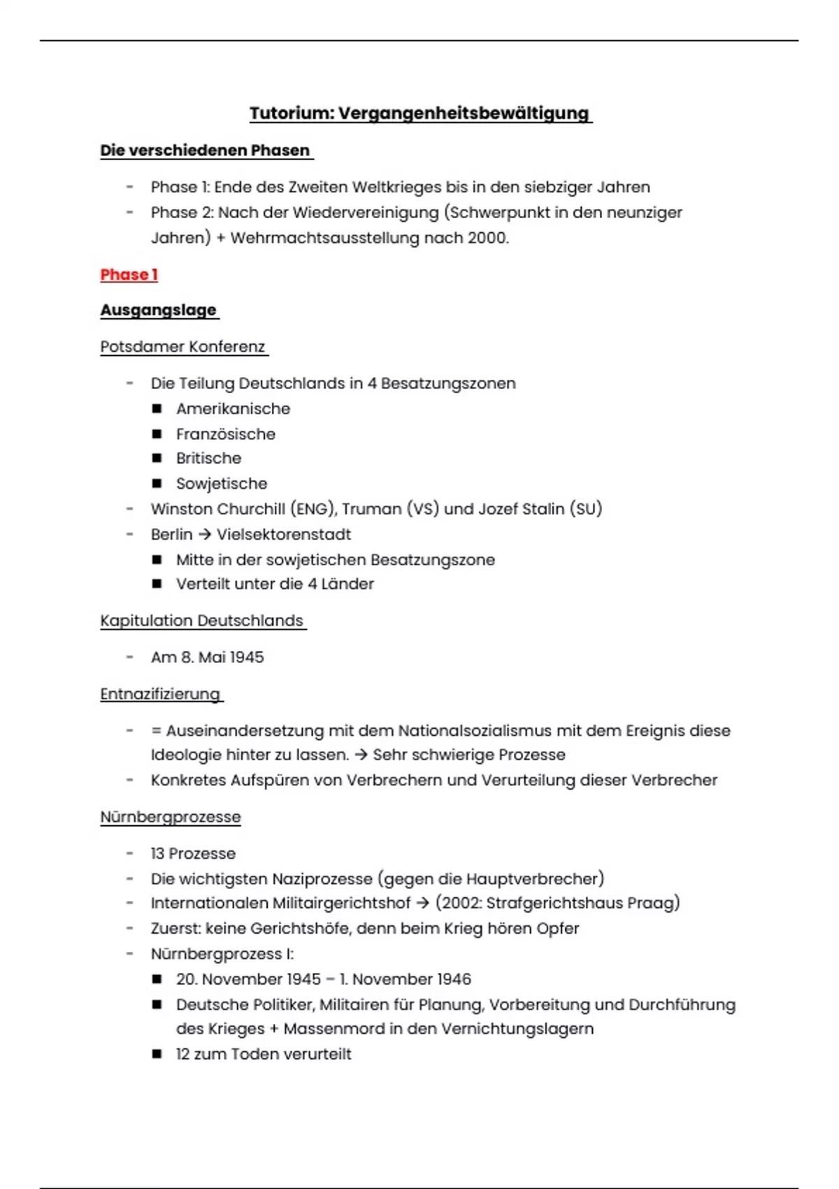 Dit is de volledige samenvatting van het tutorium over de "Vergangenheitsbewältigung". Dit spaart je uren werk uit.