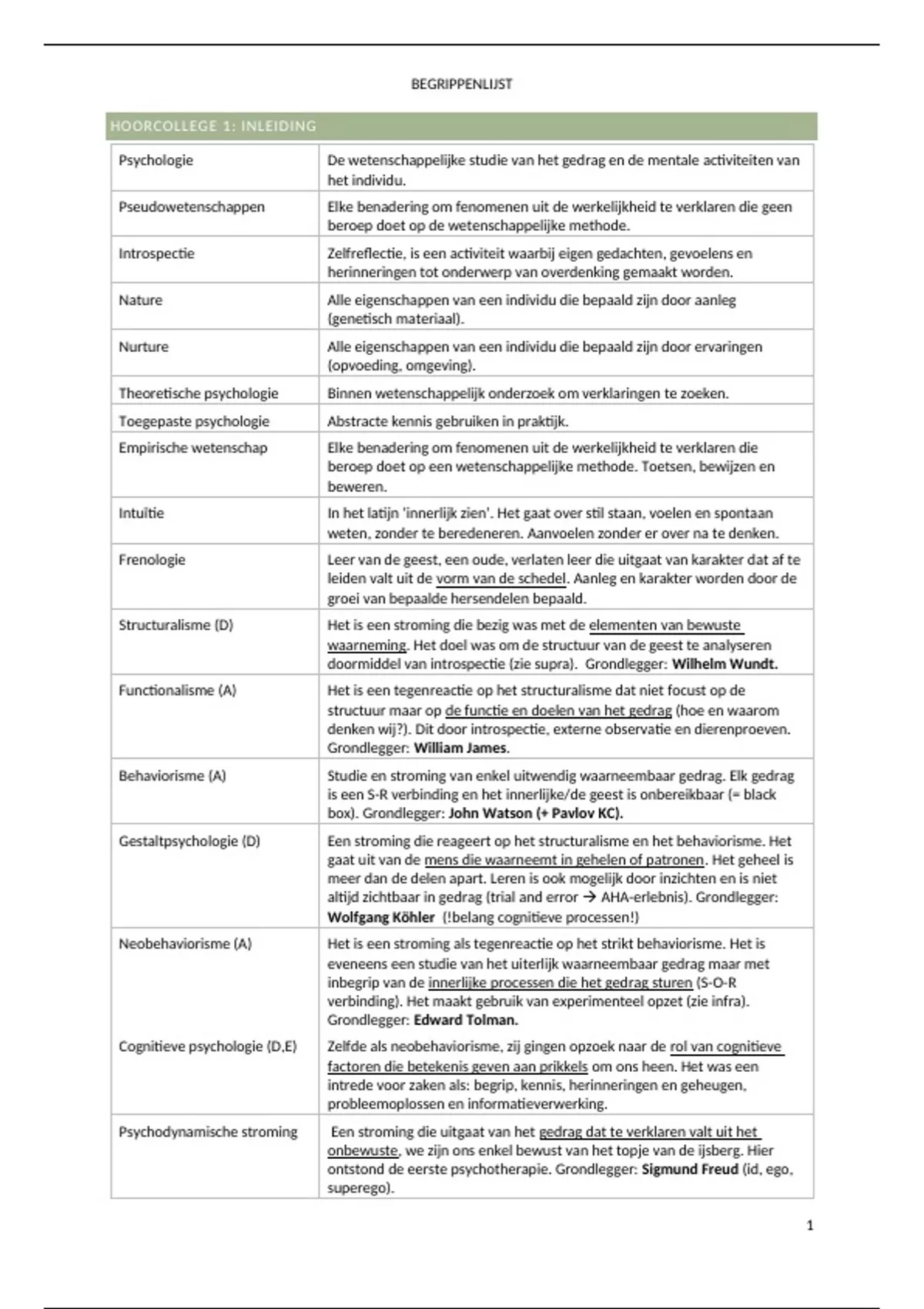 Samenvatting Begrippenlijst psychologie