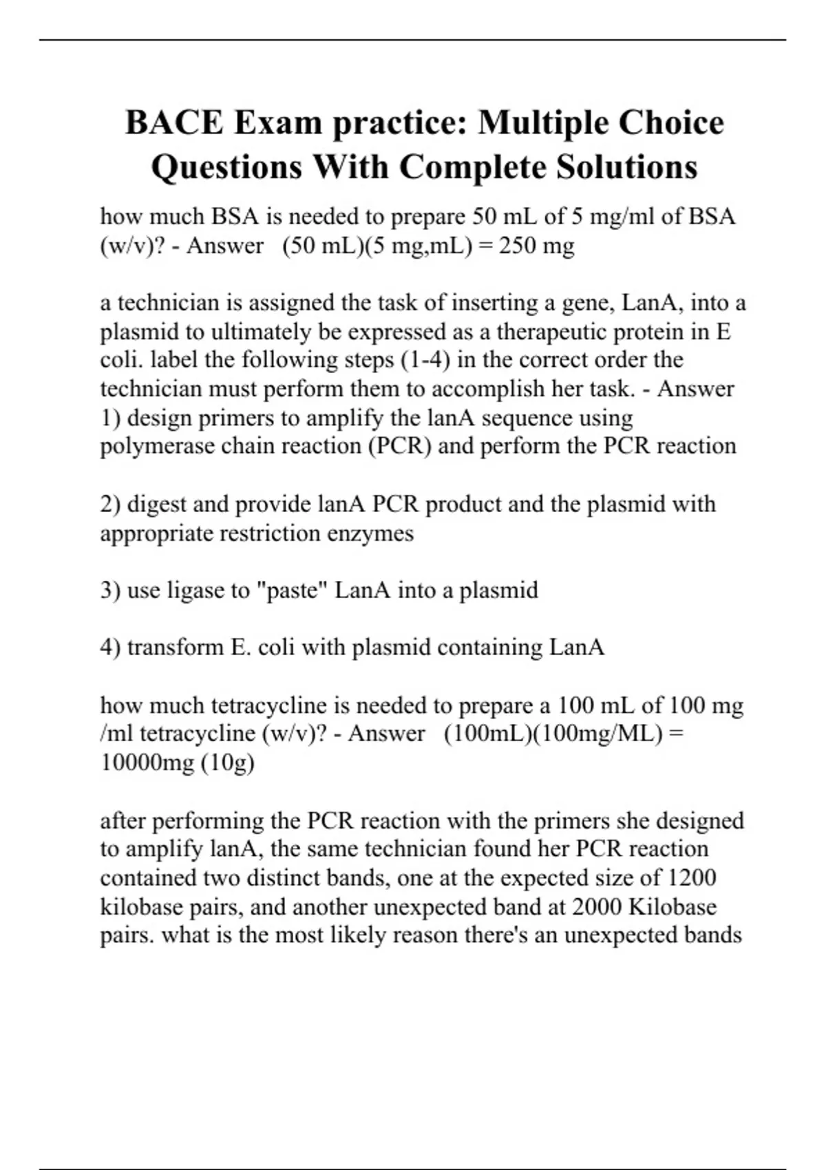 BACE Exam practice: Multiple Choice Questions With Complete Solutions