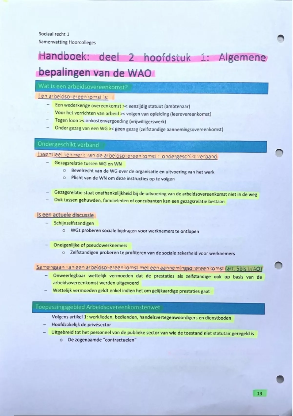 Dit document is de samenvatting van het hoofdstuk 'Algemene bepaling WAO', van het opleidingsonderdeel Sociaal recht 1 (92SWA1031) van de bachelor Sociaal werk aan de PXL. De samenvatting is een combinatie van informatie uit het handboek, PowerPoints en hoorcolleges. Daarbovenop zijn er verwijzingen naar de bijhorende wetteksten: - Algemene bepalingen (Hoofdstuk 1) - Art. 1, 2, 3, 4-5bis, 6-10bis, 43-46 bis, 120-130