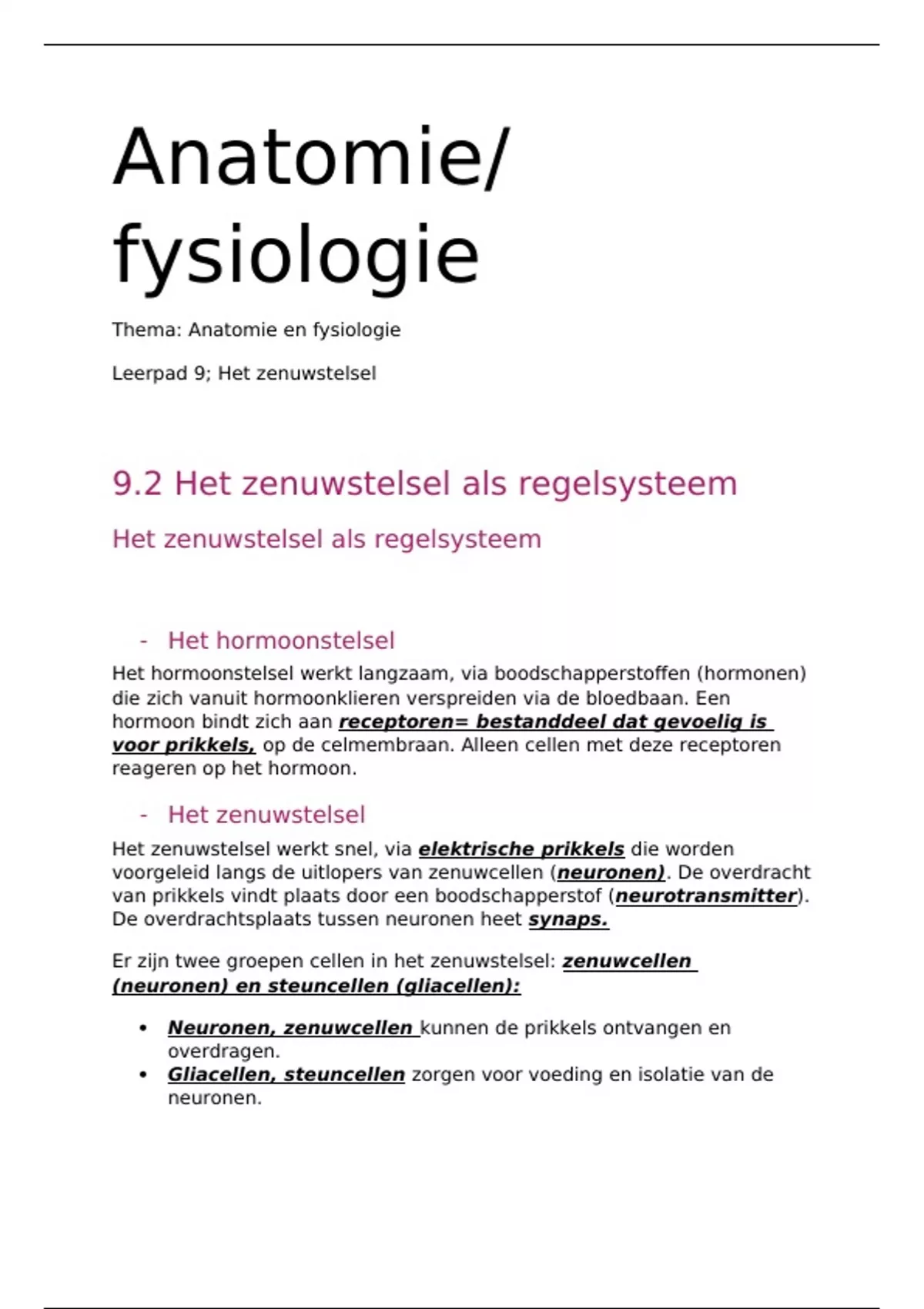 Leerpad 9; Het zenuwstelsel