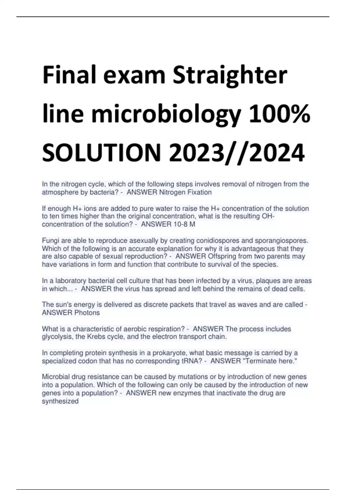 Final exam Straighter line microbiology 100% SOLUTION 2023//2024
