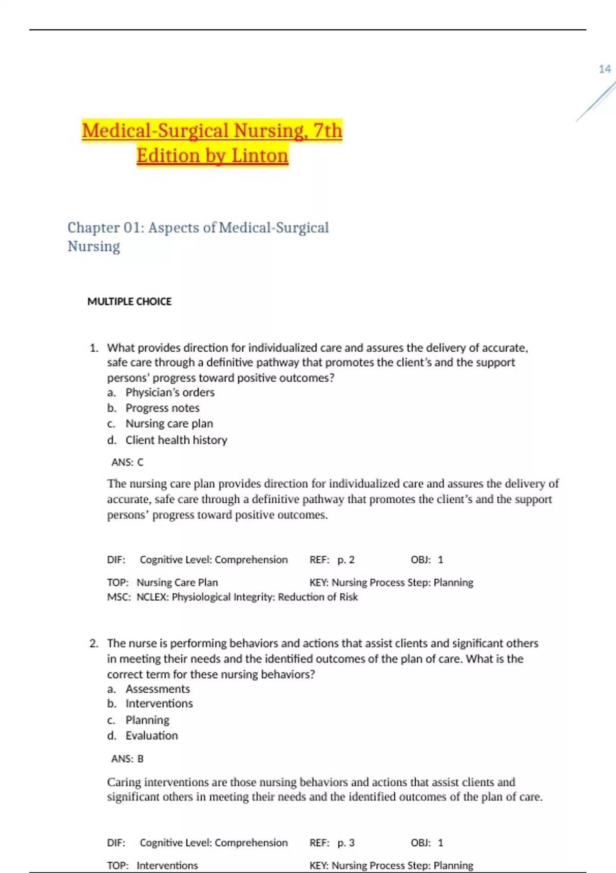 Chapter 01: Aspects of Medical-Surgical