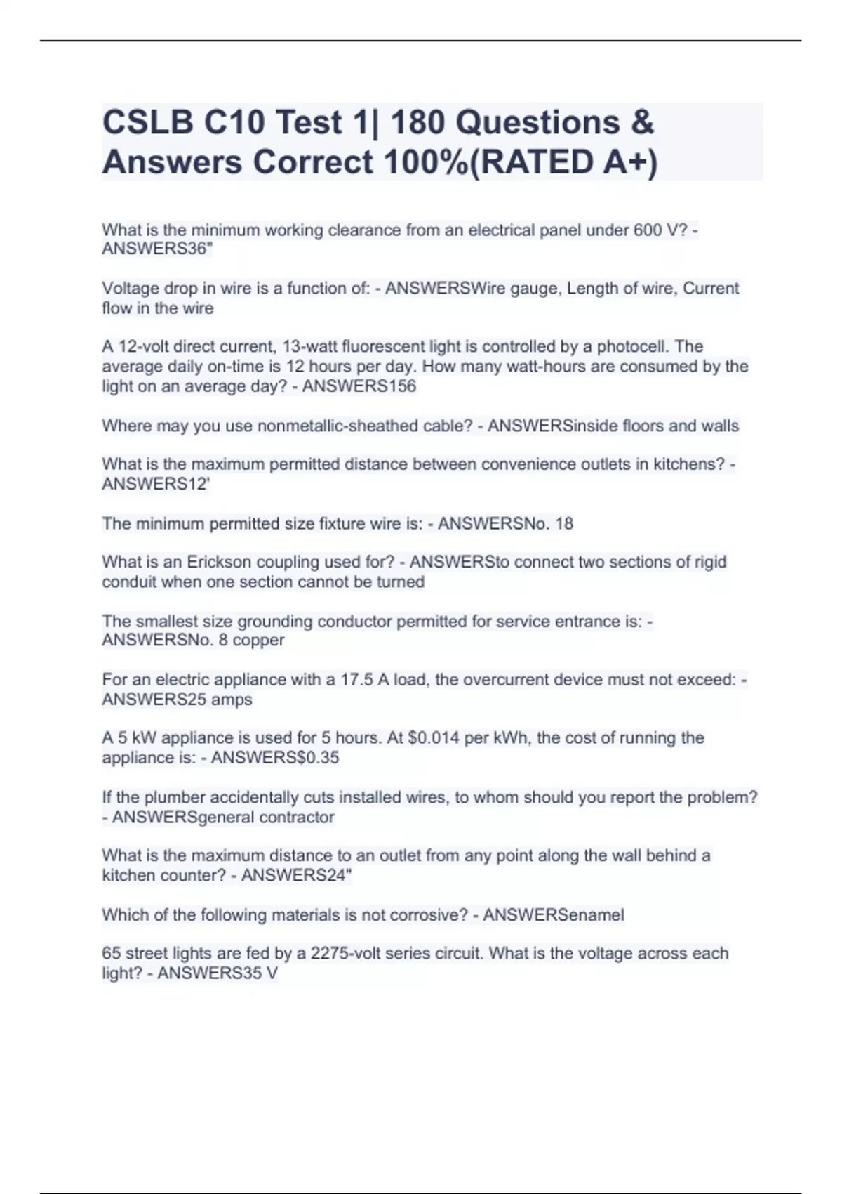 CSLB C10 Test 1| 180 Questions & Answers Correct 100%(RATED A+)
