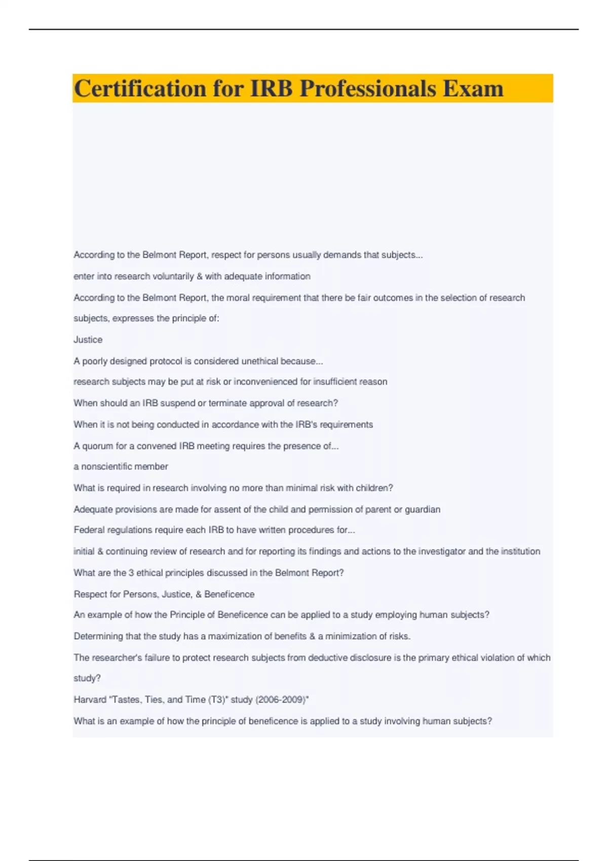 Certification for IRB Professionals Exam