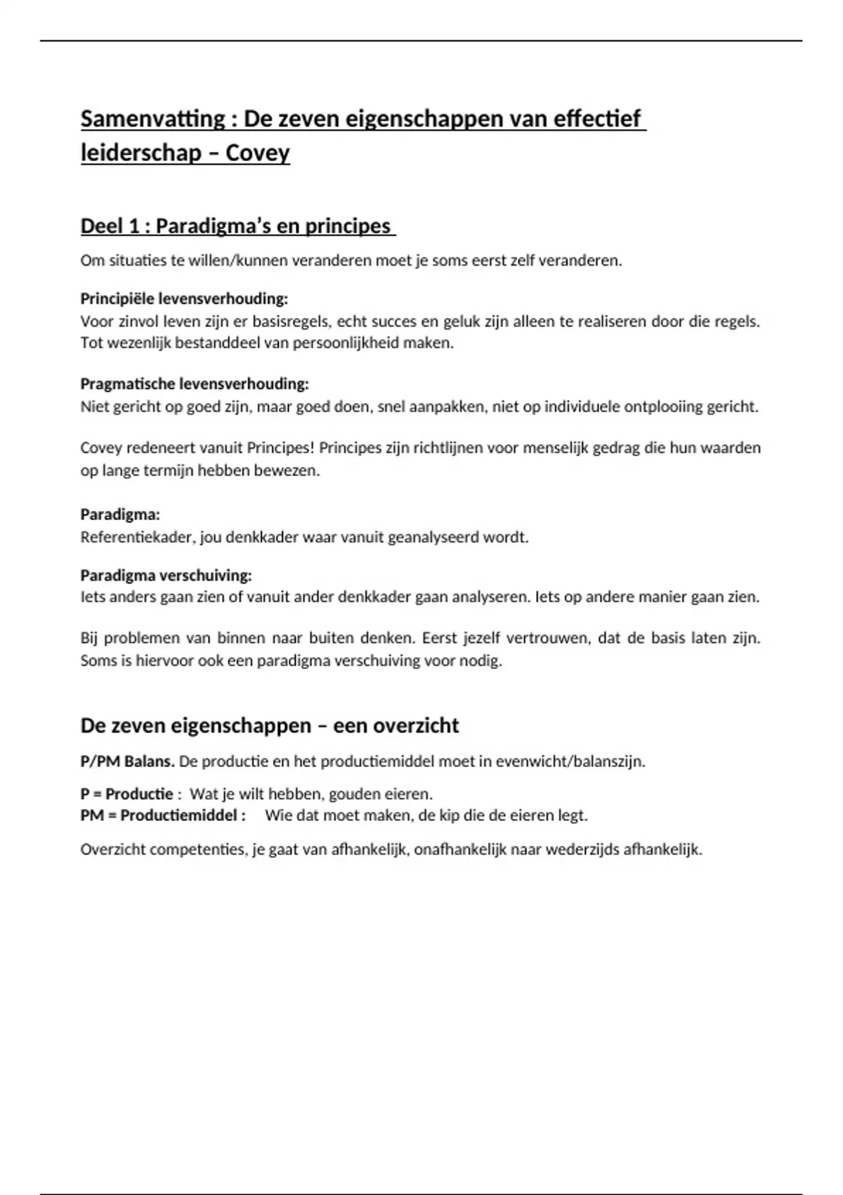 Covey redeneert vanuit Principes! Principes zijn richtlijnen voor menselijk gedrag die hun waarden