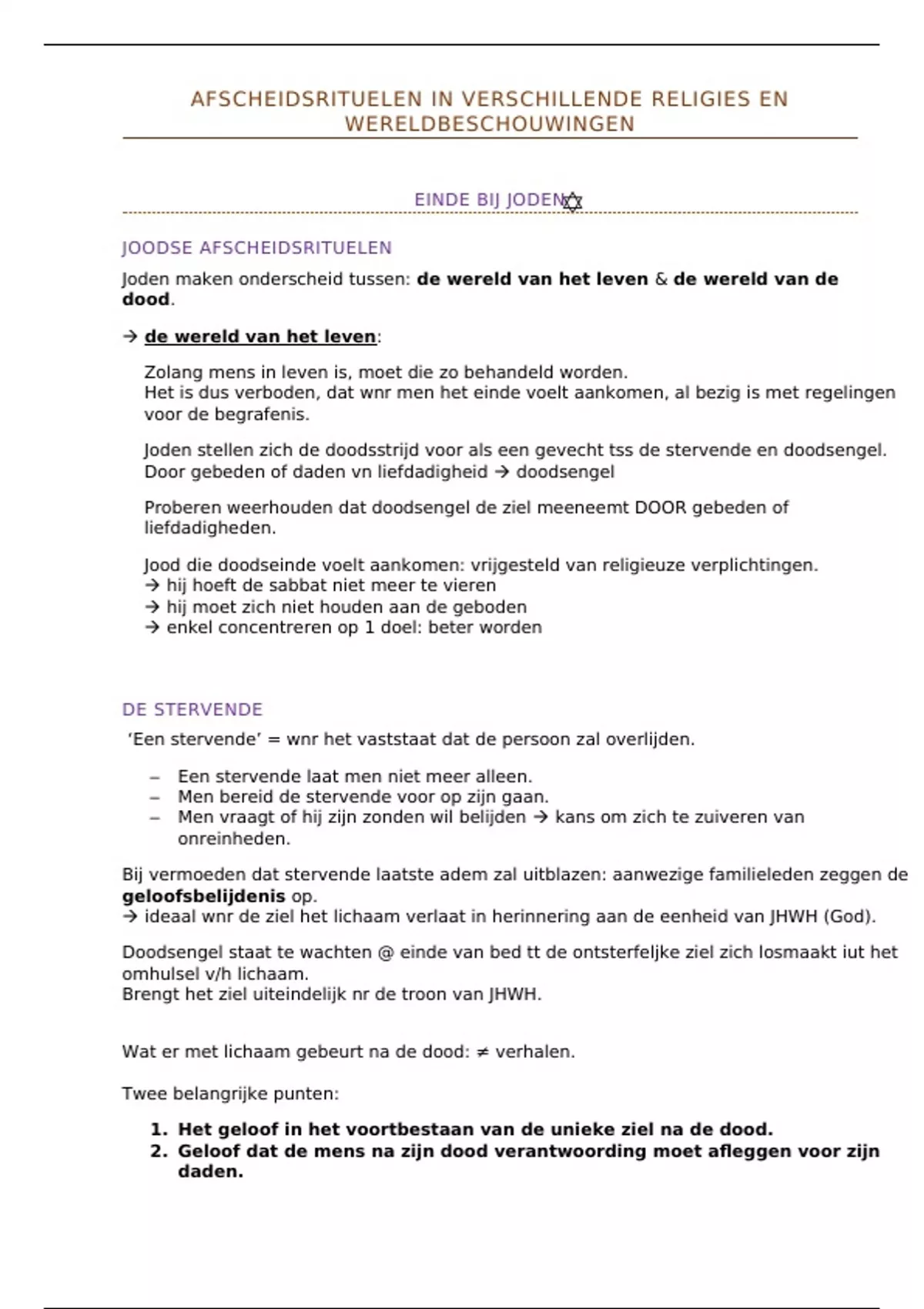 Dit document omvat een samenvatting van de afscheidsrituelen in verschillende religies en wereldbeschouwingen. (jodendom, christendom, moslims) Dit is een onderdeel van de syllabus.