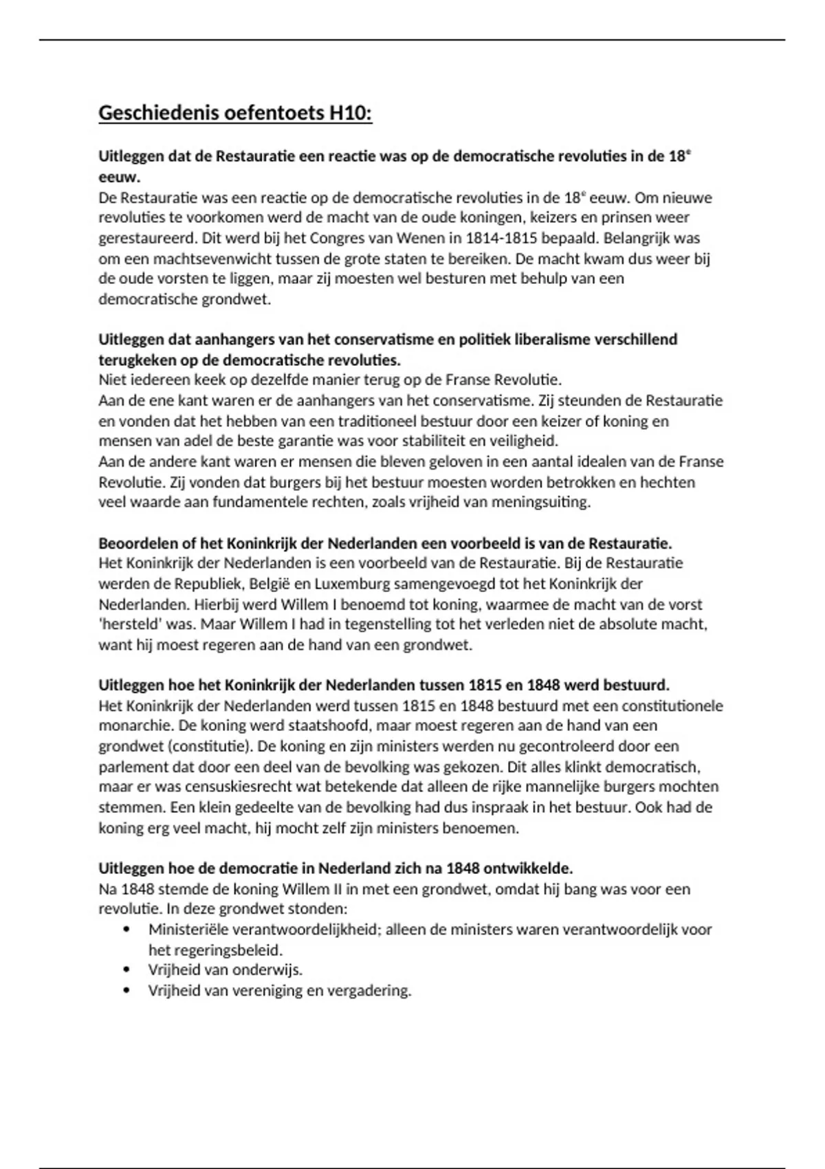 Uitleggen dat de Restauratie een reactie was op de democratische revoluties in de 18 e