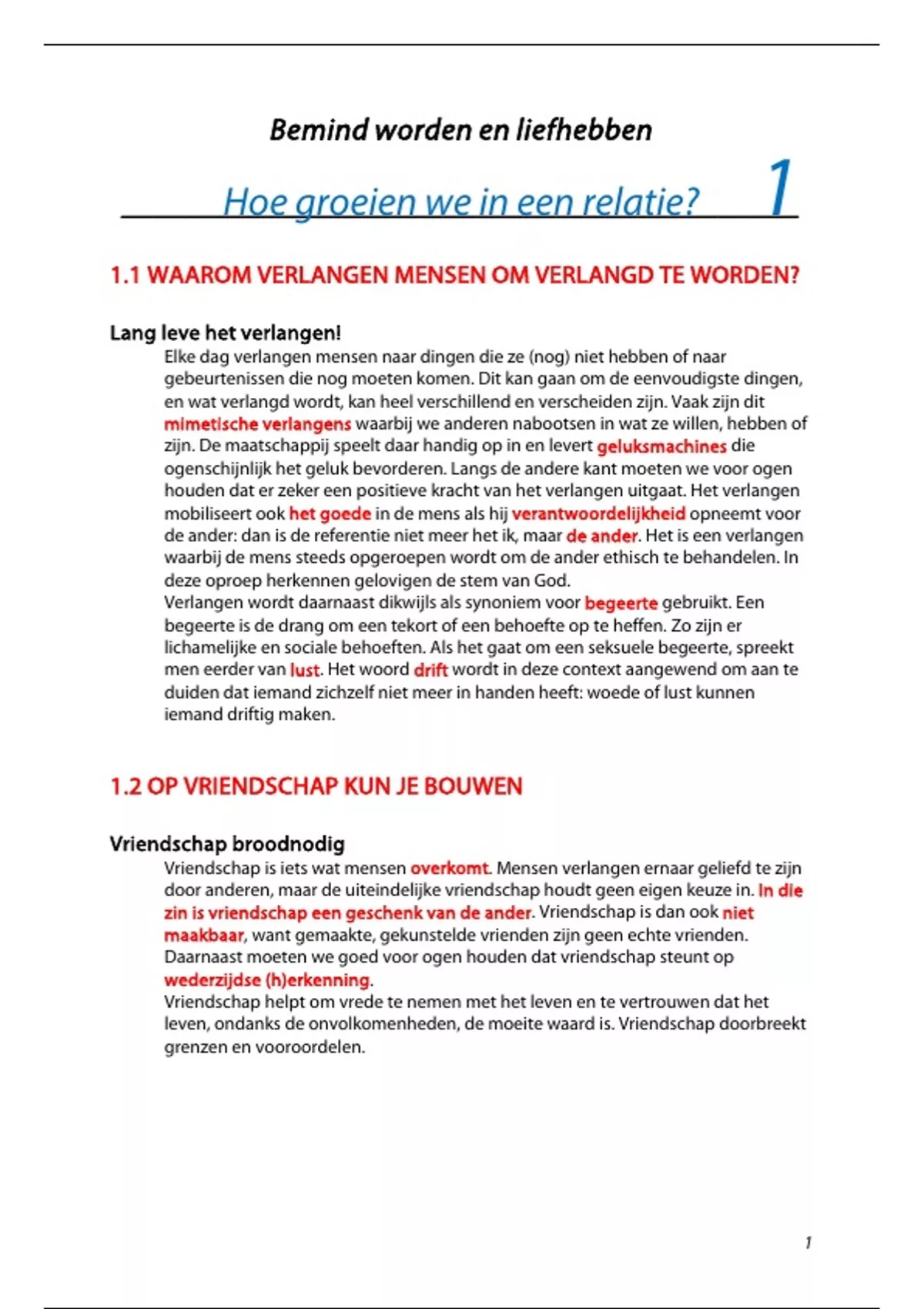 Samenvatting bemind worden en liefhebben waarin volgende hoofdstukken aan bod komen: 1. Hoe groeien we in een relatie? 2. Hoe geven mensen uitdrukking aan hun liefde? 3. Is naastenliefde een haalbare levenshouding?
