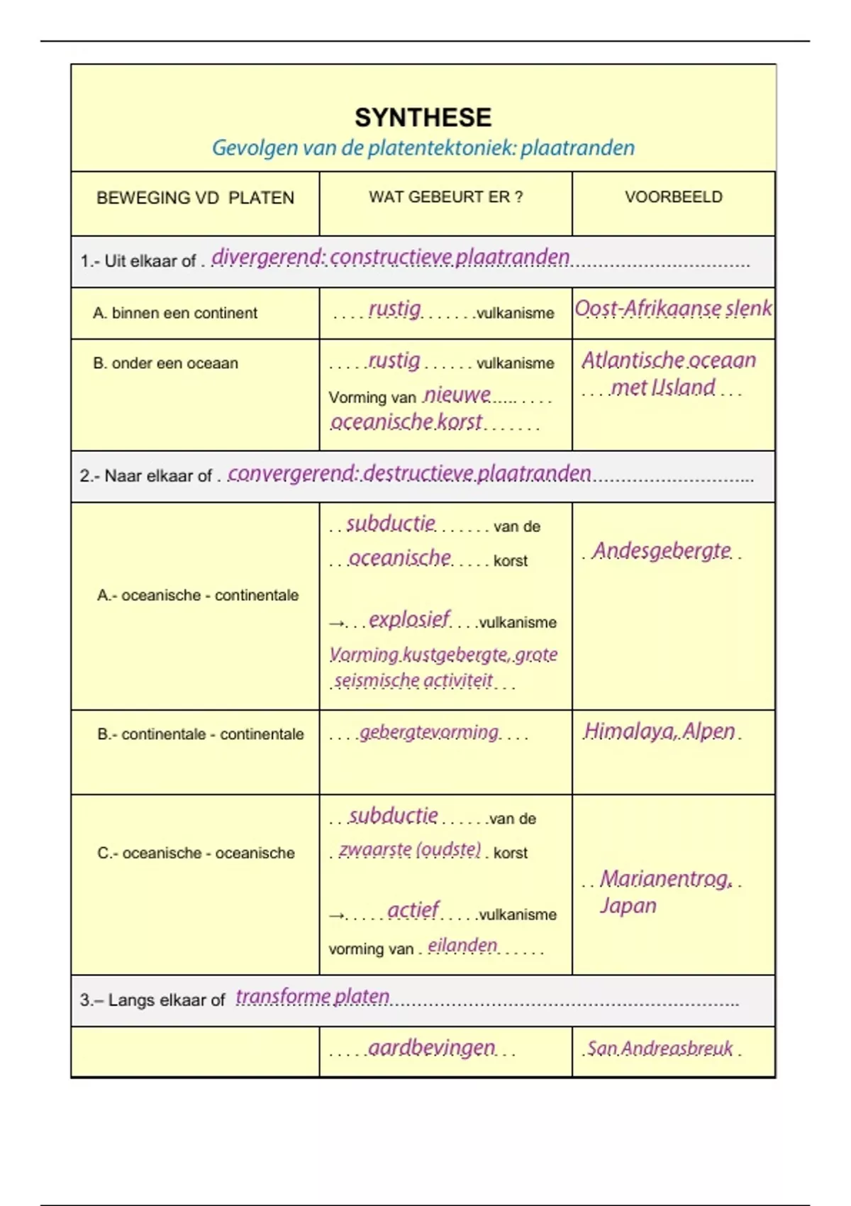 BEWEGING VD PLATEN WAT GEBEURT ER ? VOORBEELD