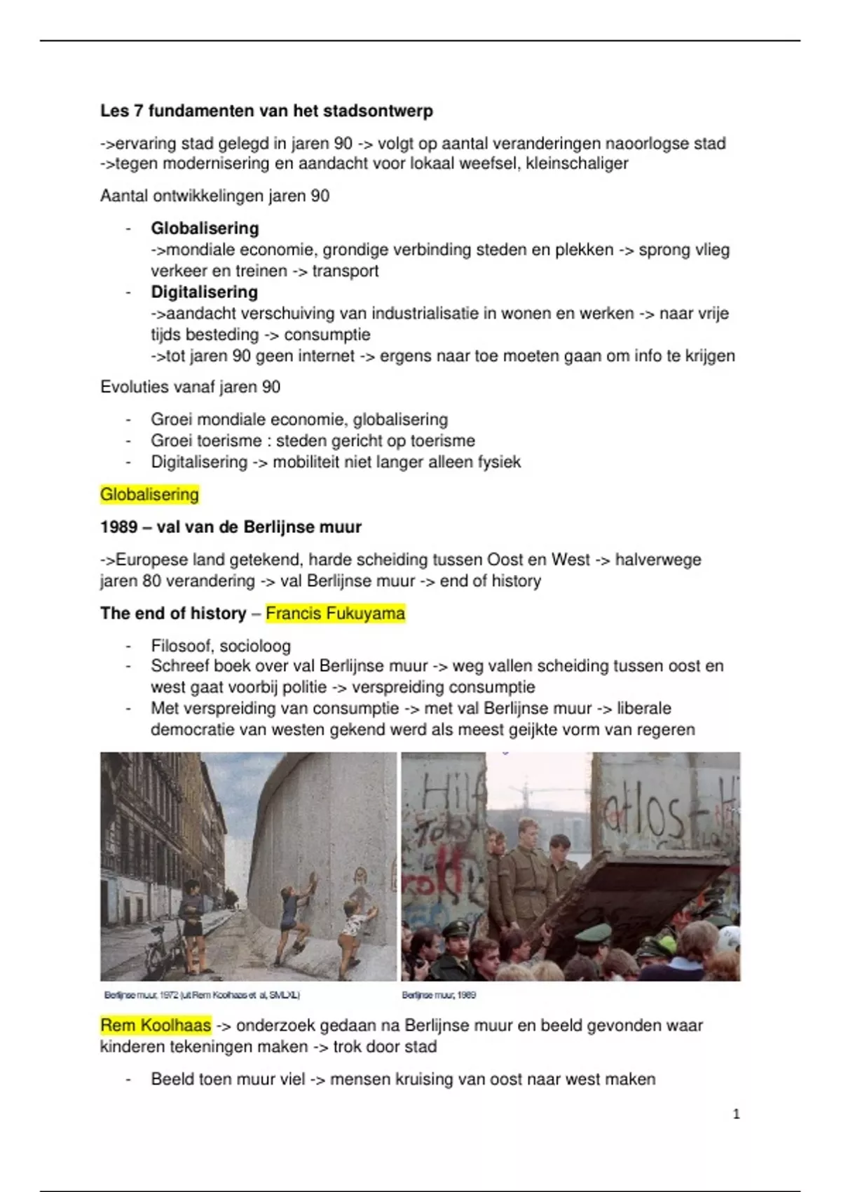 Samenvatting les 7 fundamenten van het stadsontwerp