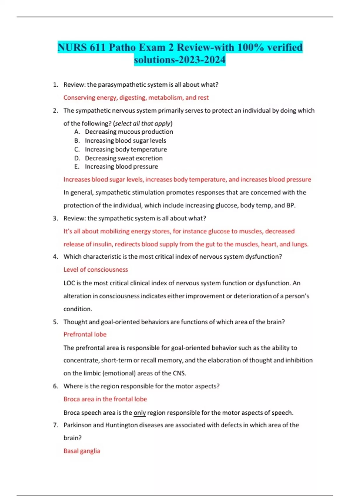 NURS 611 Patho Exam 2 Review-with 100% verified solutions-