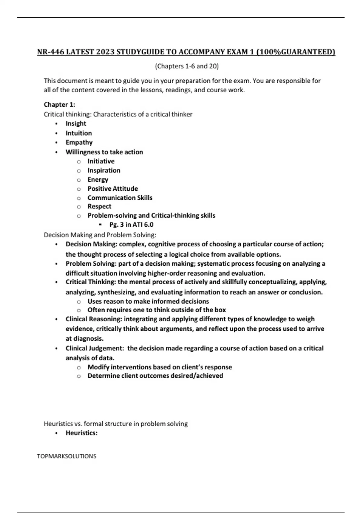 Summary NR-446 LATEST 2023 STUDYGUIDE TO ACCOMPANY EXAM 1 (100%GUARANTEED)