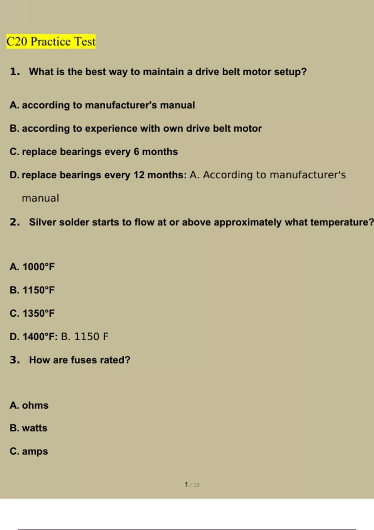 C20 Practice Test Newest Questions and Answers (2023 / 2024) (Verified Answers)