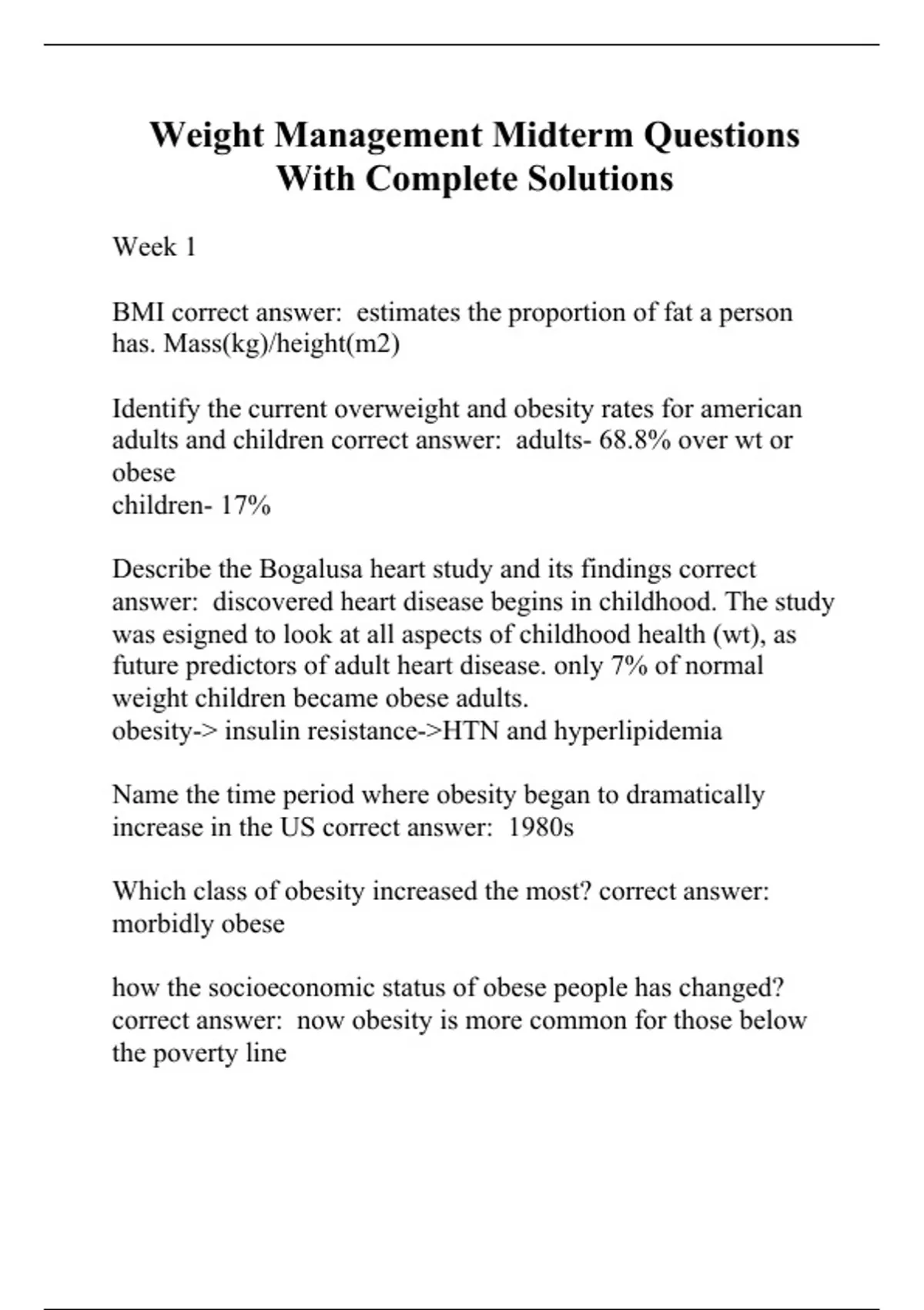 Weight Management Midterm Questions With Complete Solutions