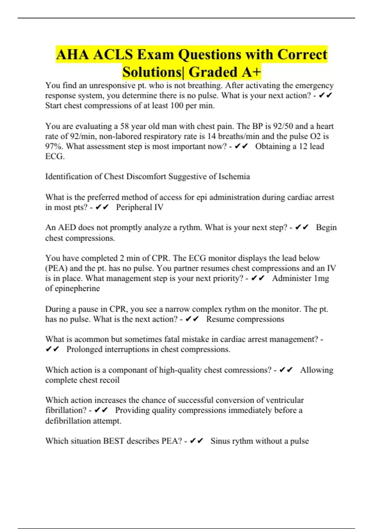 AHA ACLS Exam Questions with Correct Solutions| Graded A+