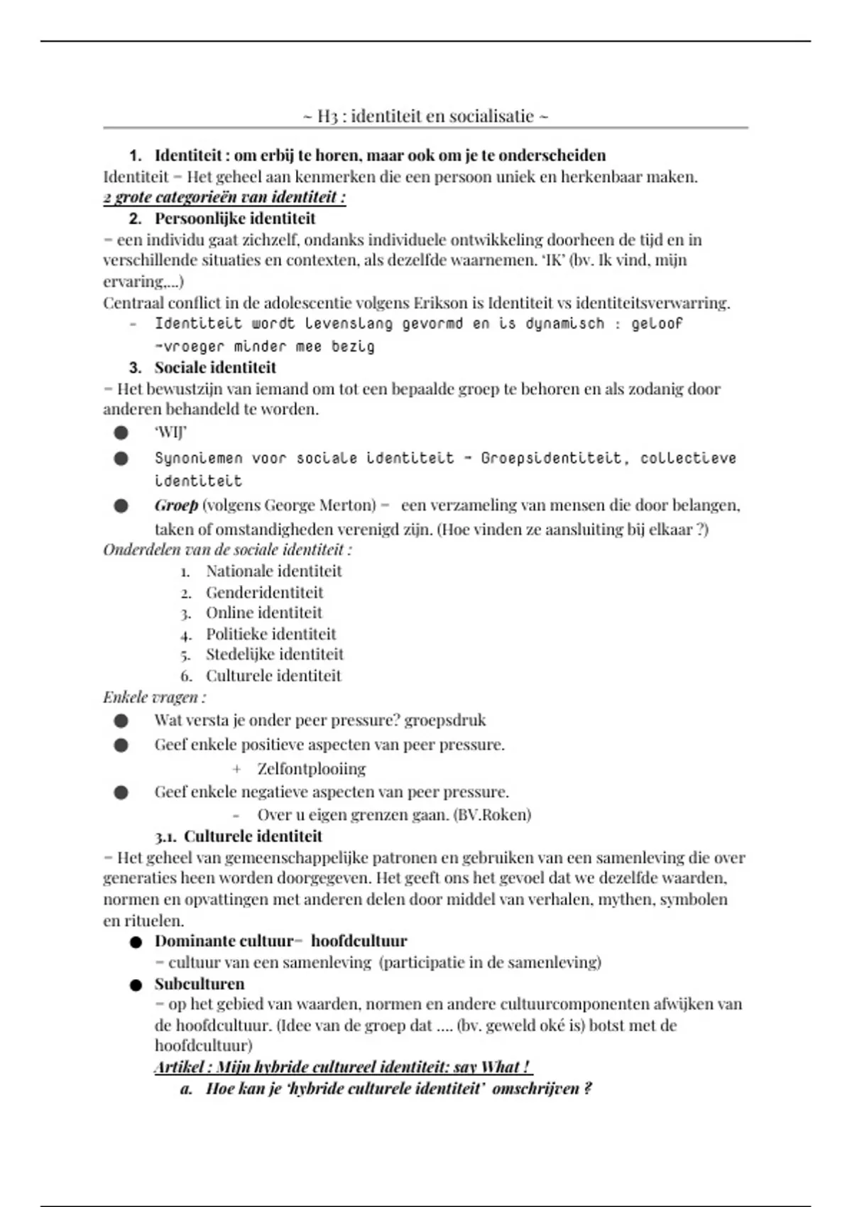~ H3 : identiteit en socialisatie ~