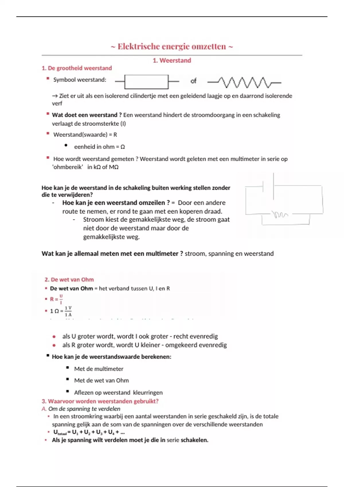 ▪ In een stroomkring waarbij een aantal weerstanden in serie geschakeld zijn, is de totale