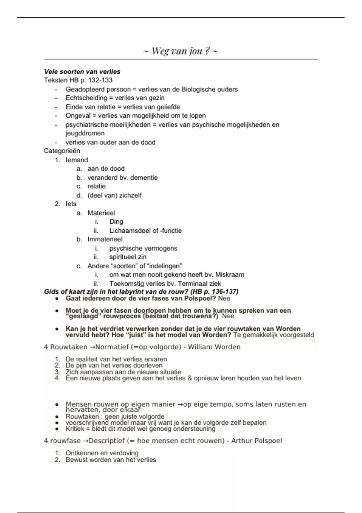 ● Mensen rouwen op eigen manier →op eige tempo, soms laten rusten en