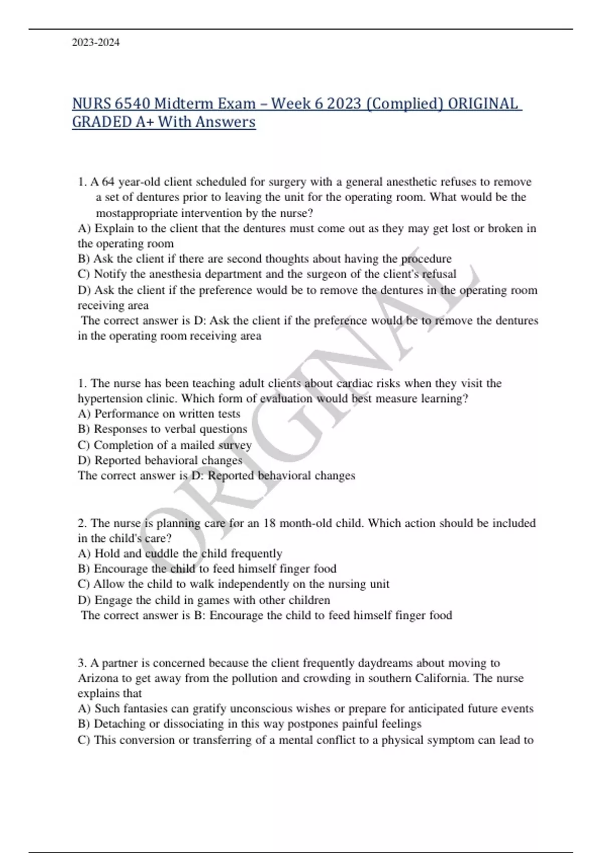 NURS 6540 Midterm Exam – Week 6 2023 (Complied) ORIGINAL GRADED A+ With Answers