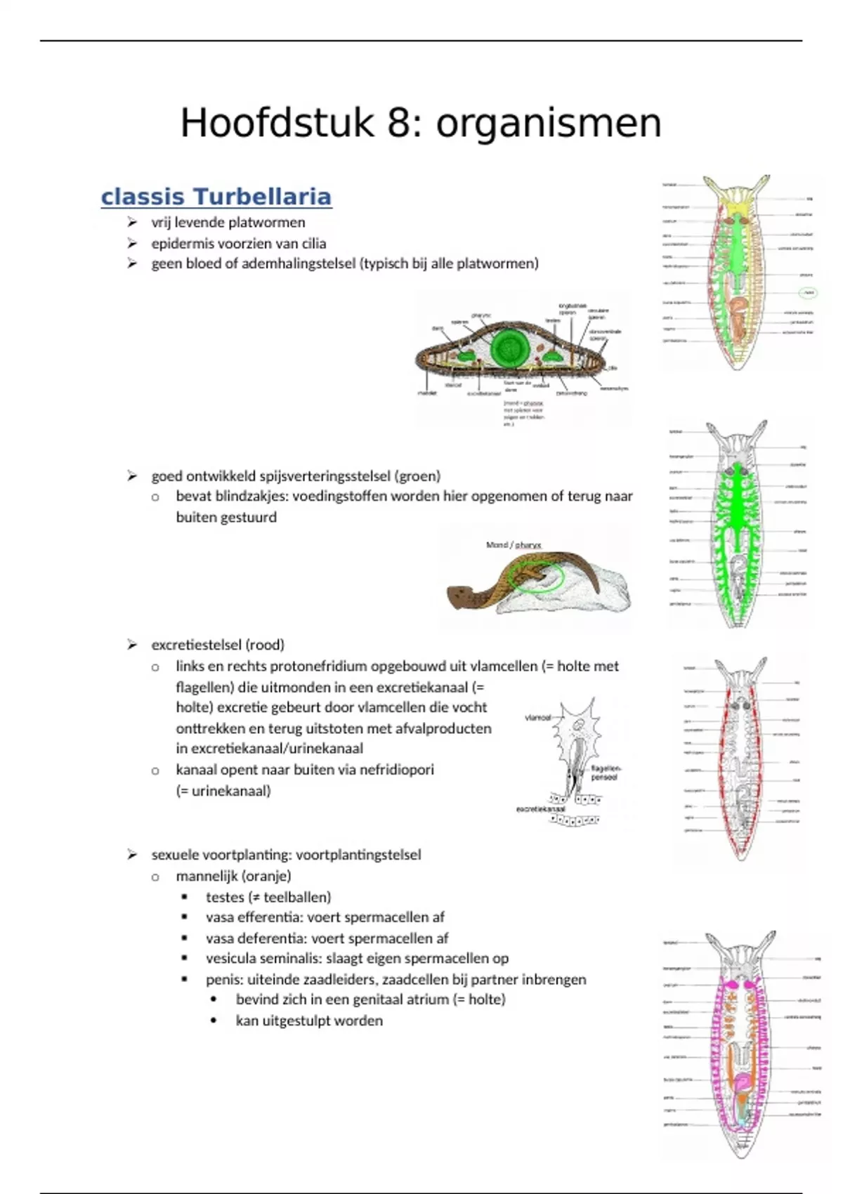 Samenvatting Hoofdstuk 8 - plathyhelmintes (voorbeelden en systematiek)